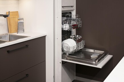 Küchenplanung mit uns bedeutet, dass wir den Stauraum für Elektrokleingeräte genauso im Blick haben wir deren Stromanschluss. Den schaffen wir da, wo er gebraucht wird. Auch direkt in der Arbeitsplatte und auf Wunsch so, dass er bei Nichtgebrauch überhaupt nicht stört.